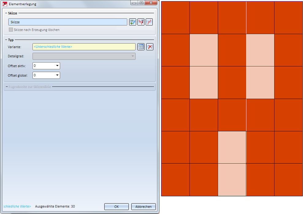 Wollen Sie noch nicht belegte Bereiche der zur Elementverlegung gehörenden Skizze belegen oder bereits vorhandene Verlegeelemente ändern, dann funktioniert dies im Prinzip wie unter Elementverlegung durchführen beschrieben.