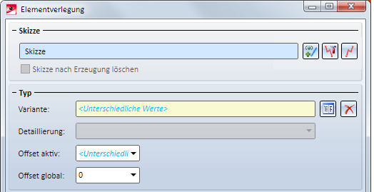 Wählen Sie einfach die entsprechenden Skizzenbereiche aus und nehmen Sie die gewünschten Einstellungen vor. Zur Auswahl der Elemente stehen dieselben Auswahlmöglichkeiten zur Verfügung wie unter Elementverlegung durchführen beschrieben.