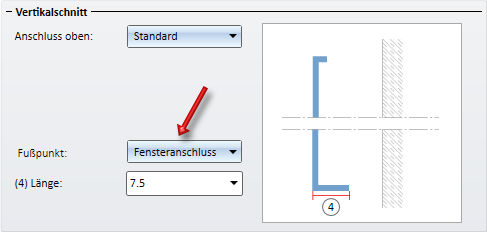 - Ändern der Ausführung unter Anschlüsse oben/Fußpunkt