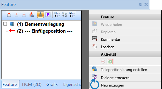 Wollen Sie dieses Verhalten nicht, dann steht Ihnen im Kontextmenü des Features Elementverlegung die Funktion Neu erzeugen zur Verfügung.