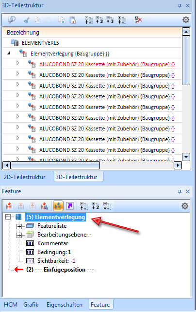 - Beim Löschen aller Verlegeelemente bleibt die Baugruppe Elementverlegung erhalten.