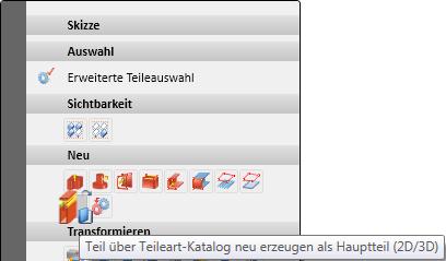 Teileart ändern Mit dieser Funktion können die Parameter eines Katalogteils nachträglich bearbeitet werden. Markieren Sie nach dem Aufruf erst das zu ändernde Teil, um im sich darauf öffnendem Katalog eine erneute Auswahl vorzunehmen. |