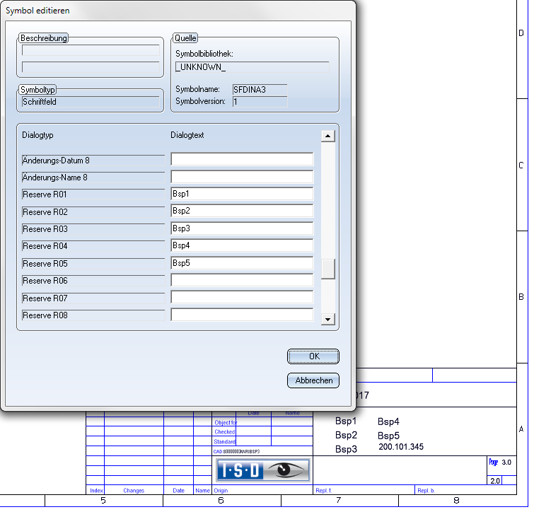 ). Klicken Sie nach dem Aufruf der Funktion in das Schriftfeld. Wählen Sie aus der erscheinenden Liste den Dialog z.B. Reserve R01 aus. Identifizieren Sie dann einen Passpunkt im Schriftfeld.