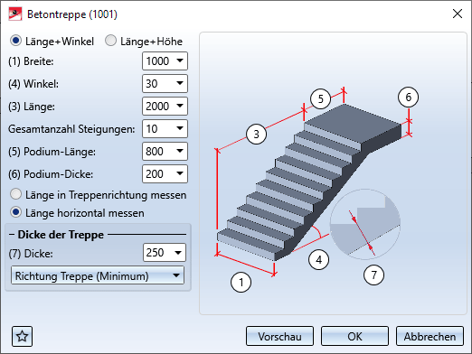 Im unteren Bereich des Dialogfensters legen Sie die Dicke der Treppe fest. Dabei können Sie wählen, ob diese