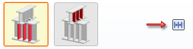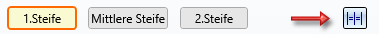 Sowohl an der Pfette als auch am Träger können bis zu 3 Steifen eingebaut werden. Durch einen Klick auf die entsprechenden Schaltfläche wechseln Sie zwischen den Einstellungen für die Steifen am Träger und an der Pfette (1). In der Zeile (2) darunter lassen sich dann jeweils die Einstellungen für drei Steifen festlegen.