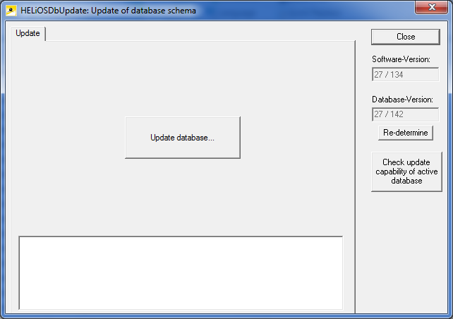 When you start the program, the HeliosDbUpdate: Update of database schema will be displayed.