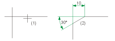 (1) Selection of the corner (2) 10 mm length, 30° angle