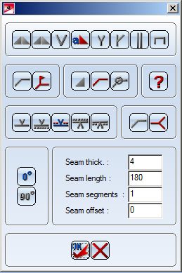 In the bottom area of the menu, you choose the angle of rotation and enter the parameter values for the weld seam.