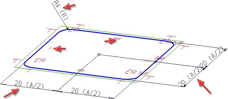 The image below shows a contour that is to be used in different sizes for the creation of bore patterns. It can either be created and parameterized as a 2-D part or as a planar sketch.