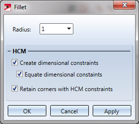 This option is relevant if a HCM constraint has already been assigned to the corner you want to fillet. If you want to retain the corner as a part of this constraint even after filleting, activate this checkbox. Otherwise, the constraint will be removed.