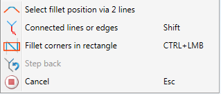 This checkbox can only be used if the Create dimensional constraints checkbox has been activated. If this is the case, the dimensional constraints will be equated for all corners that have been filleted in one step. This means that the first filleted corner contains the constraints, and the other filleted corners contain a "reference" to this constraint. If one of these fillet radii is modified afterwards by a subsequent changing of the dimensional constraint, the other fillets will be adjusted automatically.