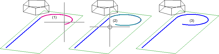(1) Selected line, (2) Point selected with cursor, (3) Lengthened line
