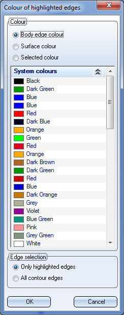 1. Use the different selection options for Colours to define the colour you want to use for the highlighted edges or the contour edges, respectively: