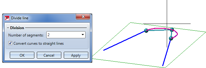 Use this function to divide lines of a sketch by specifying the number of segments. In the process you can specify whether the resulting segments are to be converted into lines or not.