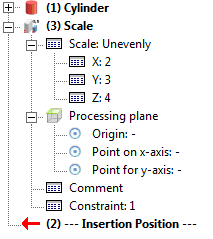 This function scales the part by specifying scaling factors (evenly or unevenly). This function also creates a feature log entry.
