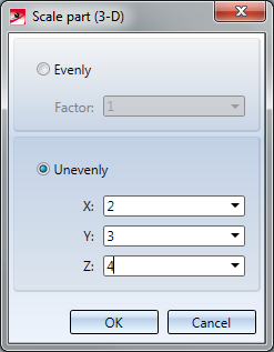 In the Scale part (3-D) dialogue, select the desired options and confirm with OK.