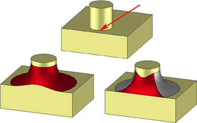 This option enables you to have an influence on the way in which the fillet surface is created: