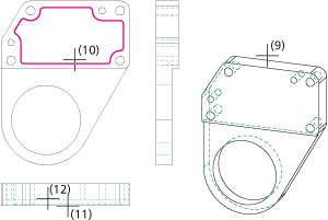 3-D model (9), then select the contour of the subtraction (10) in the front view.