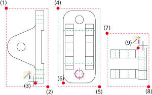 - Repeat step 5 for the left-hand side part, i.e. call the Part from Views function again and identify the polylines for the part in the front view (7), the side view (8) and in the top view (9).