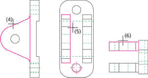- Identify the 3-D model of the plate (4), the identify the hole contour in the side view (5).
