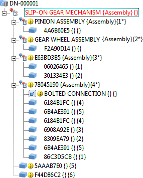 Inthe ICN, select all parts beneath the main assembly, right-click and select HELiOS > Article master > Delete assignment. Then, apply the function to the main assembly.