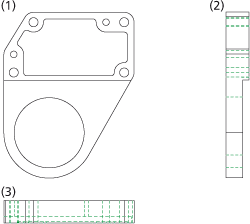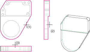 This example illustrates the conversion of the 2-D drawing shown below to the 3-D model of a cast part.