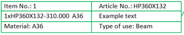 You can use tab stops (besides the selection of HiCAD fonts) to apply a tabular alignment to text blocks of an annotation. To do this, just place the cursor at the required position of the text and press the TAB STOP key on your keyboard.