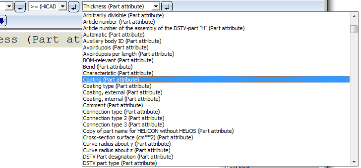 HELiOS document attributes and project attributes, too, can be directly selected from the right list box.
