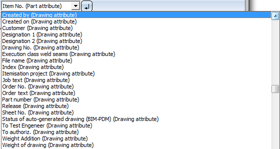 HiCAD part attributes as well as HELiOS article attributes can be directly selected from the right list box in the Annotation Editor.