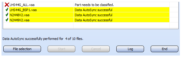 After completion of the part data synchronisation, you can display a Log about the process. Click End to end the program.