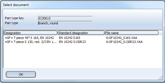First, select the part type of the variant to be checked, e.g. Branch.HiCAD displays a list of the part data records (general type) that exist in the database for this part type.
