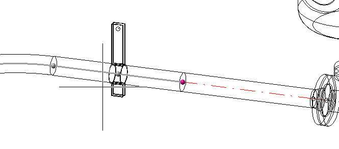 In the shown example, the left pipe is a bent pipe with clamp. Here, two additional points are displayed. The graphic cursor is located between these points. As these points are no connecting points, they are displayed in reduced intensity, and the nearest possible connecting point will be selected.