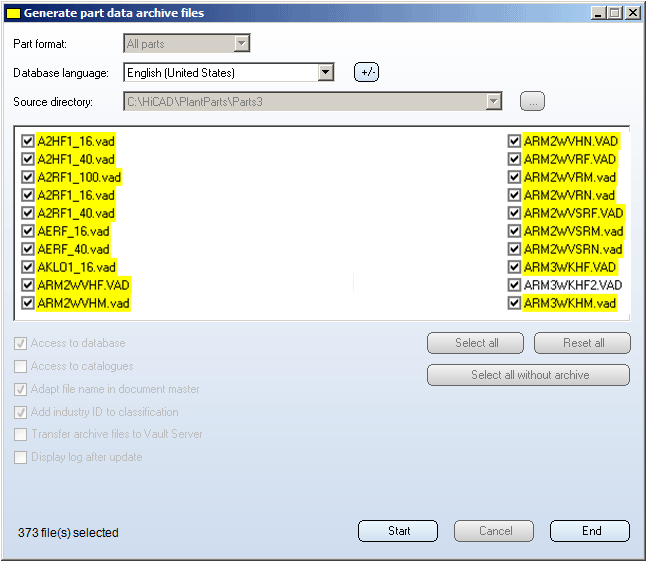 The update of the part data begins. Depending on the number of existing part files, this process can from a few minutes to up to half an hour; this time can be significantly longer if the data are transferred via a network. The updating was successful if an archive file could be generated for all parts with article master data (or catalogue entry, respectively, in case of the Catalogue as part data source). For all other parts, too, an archive file will be created if possible. If the updating was not successful, an error log will be displayed, indicating for each part whether or not an archive file could be successfully generated.