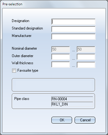 When you have selected the pipe class, the dialogue box below will be displayed when you call the option again:
