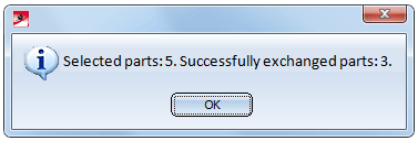After completion of the exchanging process, HiCAD will display a message showing show how many parts could be exchanged successfully.