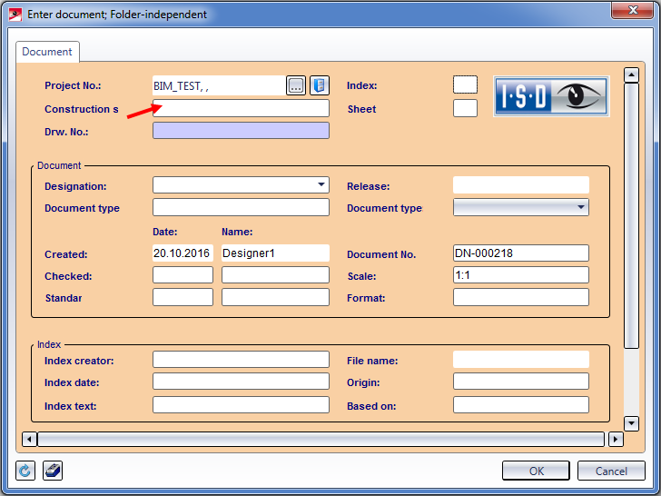 - Enter the document attributes in the Enter document dialogue window and confirm with OK.