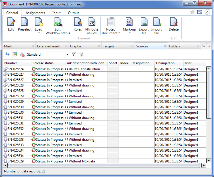 You can now display the current links and the product structure directly in HiCAD or in the HELiOS Desktop. To display the links, select Management + BIM > HELiOS PDM functions for active drawing > Document master for active drawing .