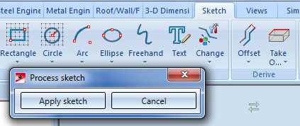 Process sketch icon. The Sketch tab and the Process sketch dialogue will then be displayed. Change the sketch and confirm with Apply sketch. The Sheet along sketch dialogue will then be displayed again.