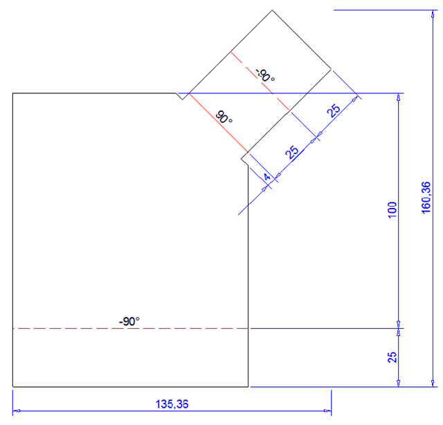 Use the Dimensions option to dimension only the largest extension in X- and Y-direction. Select Outer contour do dimension the complete contour. If you have activated the Bend lines option, the bend line running parallel to the outer contour will be dimensioned - irrespective of the other dimensioning settings.