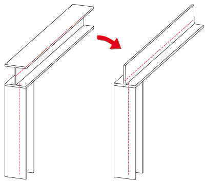 Replacement of several mitre-cut I-beams by T-beams (via BOM)