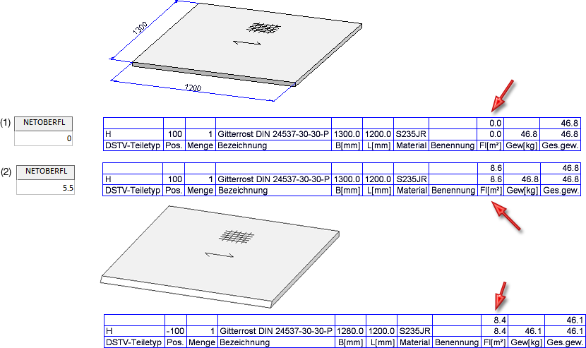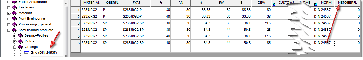 - For Gratings acc. to DIN 24537 you can specify the surface area per square metre of installation area. For this purpose, the NETOBERFL column in the corresponding table of the catalogue Editor is available.