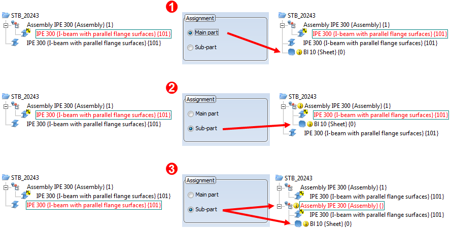 The plate can either be inserted as a main part or as a sub-part to the beam. Please note the following: