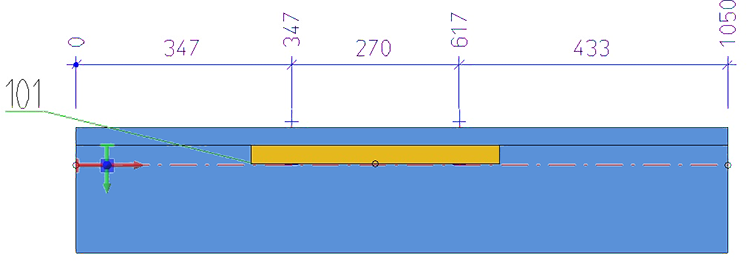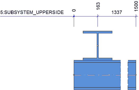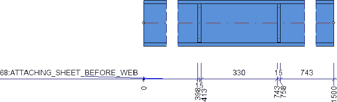 * When dimensioning attached sheet/plate parts or plates and beams that border on dimensionally relevant beams, both contact points will always be dimensioned. If only the first contact point in the chain is to be dimensioned, open the STW_DimSettings.XML (conventional dimensioning settings) file in the HiCAD sys directory and set the parameter