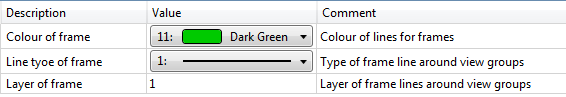 Colour, layer and line type of the frames can be specified in the Configuration Editor at System settings > Visualisation > View group.