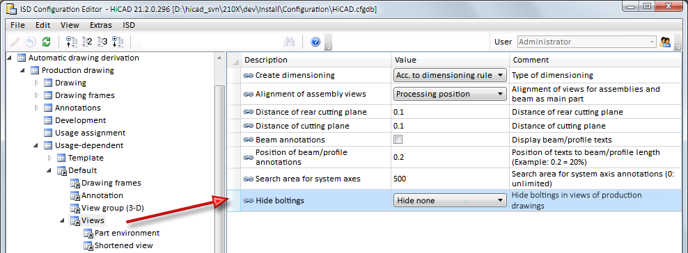 Previously, various Steel Engineering settings could be specified in the system file STB_PARAMETER.DAT which is now no longer available. Its setting options have been moved to the Configuration Editor at Steel Engineering.