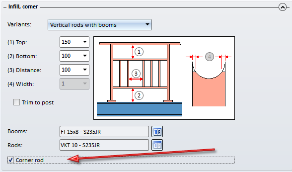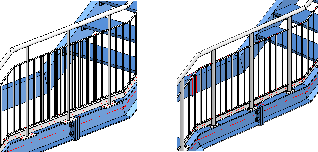 If there are several beams in succession that are aligned in the same direction, the railing elements of these beams will be combined into one segment assembly. As a result, continuous hand rails and knee rails will be formed on these beams.