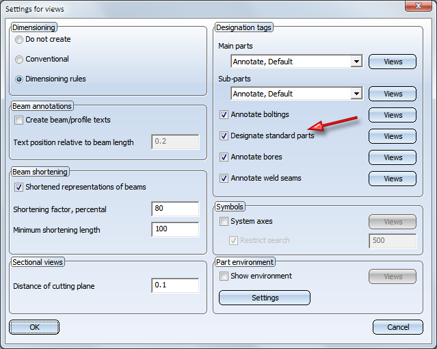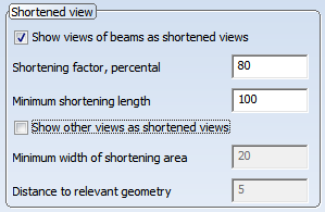 Previously, only views of beams and profiles could be shortened. This is now also possible for other views, e.g. views of Sheet Metal parts etc. For this purpose, the Settings for views dialogue window has been modified. There you can specify beneath Shortened view which views are to be shortened.