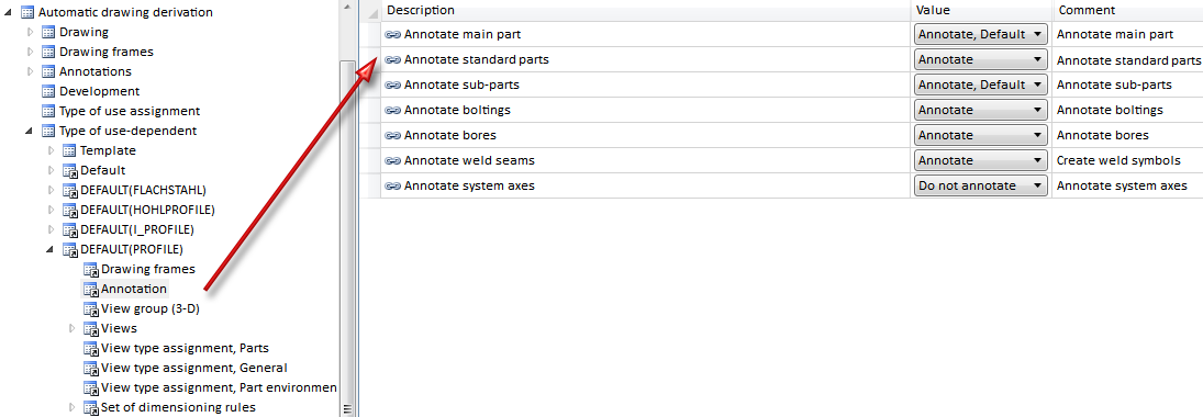 The Part annotation templates function has been expanded for mounting drawings. There, you can now specify the representation of annotations for main parts, sub-parts, standard parts and boltings:
