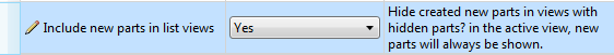 Created new parts will always be shown in the views of the mounting drawing. This is the default setting. .