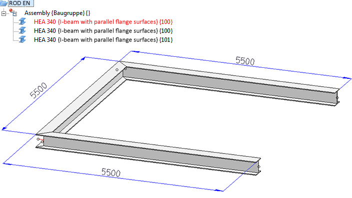The drawing shown below consists of three beams of the type HEA 340 and a length of 5500 each.
